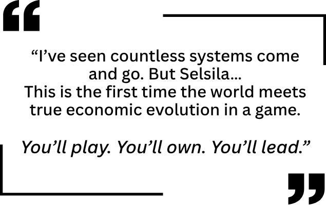 SELSI WORLD is Next-Gen Real World Game Economy powered by blockchain and AI. Play as AI-driven characters, earn real assets, and shape a decentralized economy through farming, trading, mining, and governance. All backed by NFTs and real value.